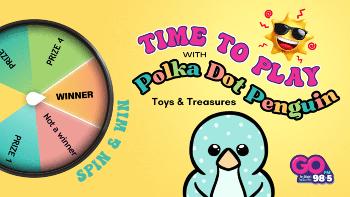 Spin to Win with Polka Dot Penguin Toys and Treasures!! Will you be the lucky winner this week? Every week, GOfm and Polka Dot Penguin Toys and Treasures want to give three weekly lucky winners a $15 Gift Card. So you can go and PLAY and SHOP at Polka Dot Penguin Toys and Treasures!