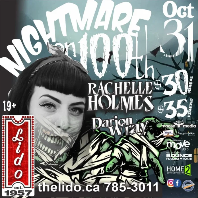 Get ready for a spooktacular night at your favorite haunt. The Lido Theatre. Darion Wray will rattle your bones with his rockabilly style and powerful voice and the sultry siren Rachelle Holmes will have you entranced to tear up the dance floor and monster mash all night long.